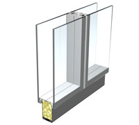 Small-line flush Verglasung Die Glasscheiben sind im Randbereich in Glasrahmenfarbe lackiert und auf den Rahmen aufgeklebt. Die Glaskanten sind mit dem Rahmen bündig. Dadurch entsteht eine flächenbündige Wandverkleidung.